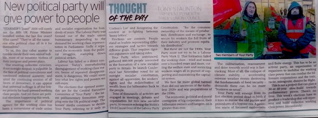 The elections that opened yesterday are for the Central Executive Committee of “Your Party” – the latest parliamentary formation stepping onto the UK political stage. The mass media began and continues to deride and slur the Party, referring to it only as “Corbyn’s Lot” and denigrating the contest as in-fighting between “loony lefties”. Don’t get fooled again.