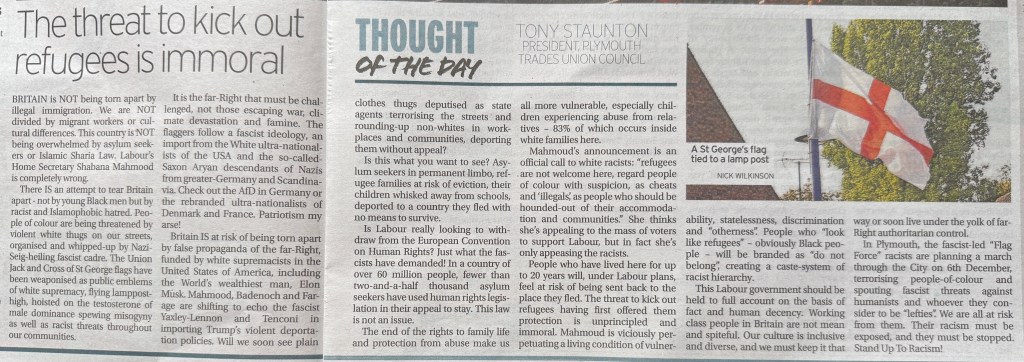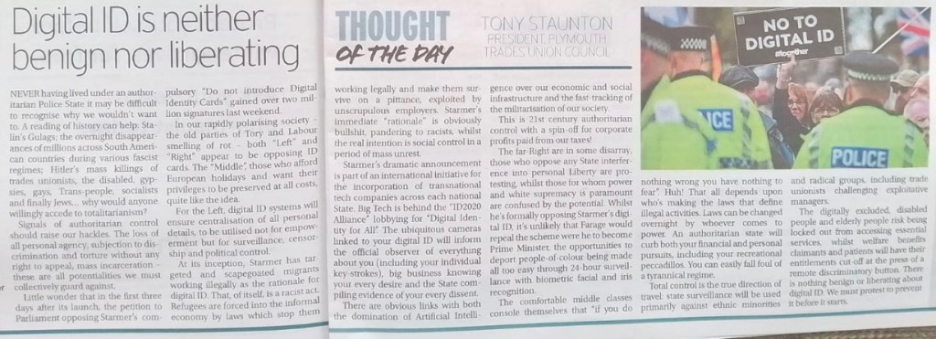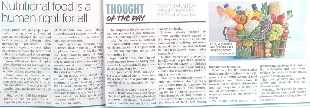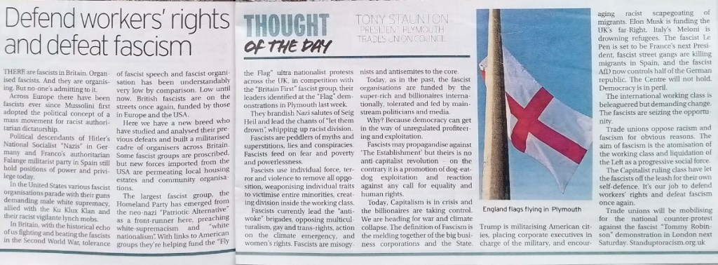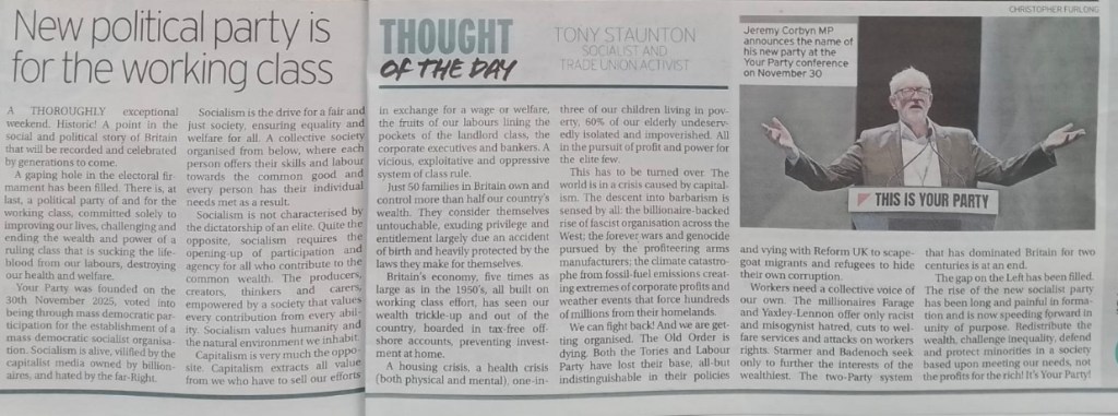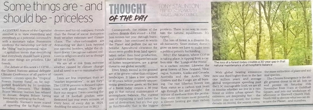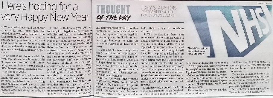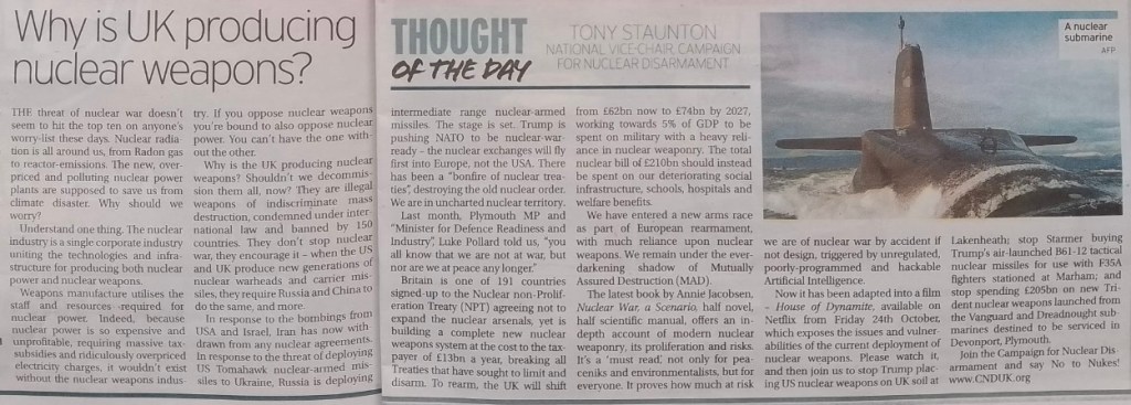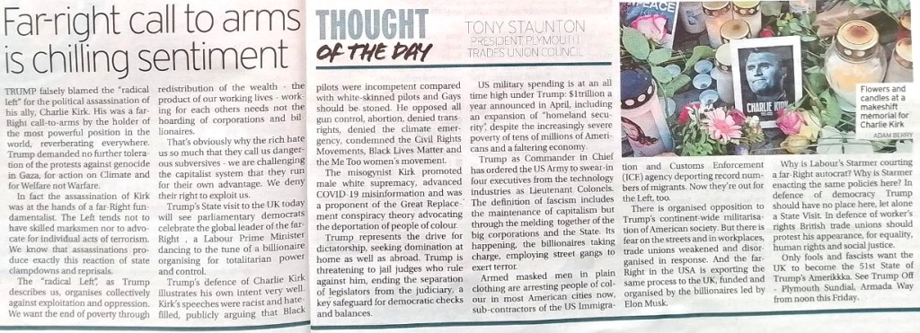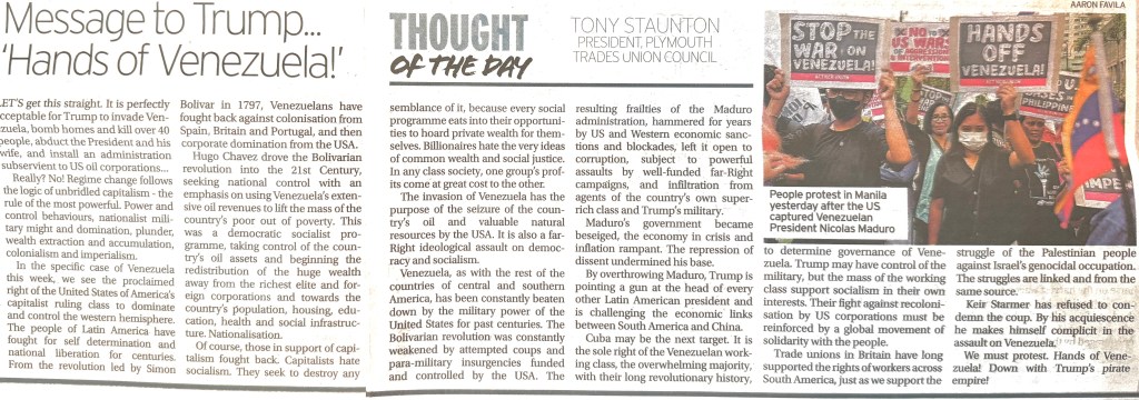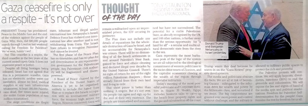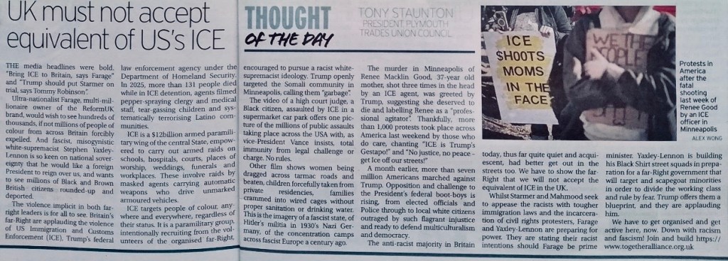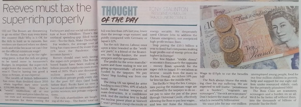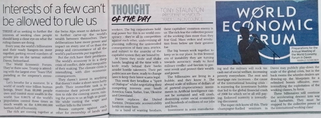 My weekly column in the daily Plymouth Herald (20.1.26) raving mad about the billionaire jamboree in Switzerland courting Trump and his cronies. It’s deadly serious, this carve-up of the world and it’s people’s for the wealth and power of a tiny minority. It’s why I want a revolution!