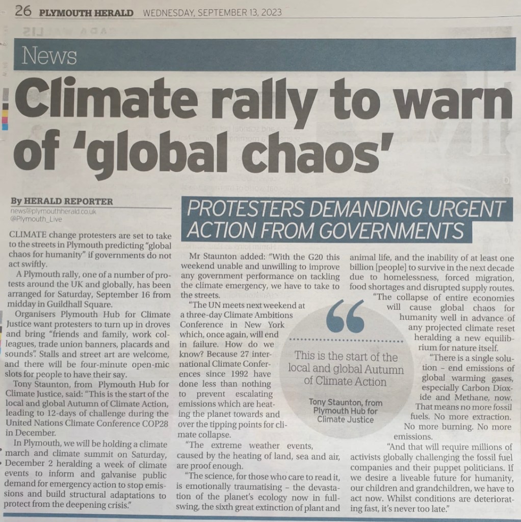The hypocrisy and negligence of the political class in Britain is second to none. Amongst all the travesties, from the inhumanity towards Palestinians in Gaza to the one-in-three children living in relative poverty here at home, the disassociation of politicians from the lives of the vast majority is total. The denial of Climate Chaos is just one element, but a crucial one. This is the unedited version of my weekly Comment in the daily Plymouth Herald newspaper, wholly inadequate in the face of the absurdity and corruption of Parliamentary politics today.