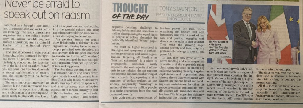 My weekly comment column in the daily Plymouth Herald (30.9.25) opposing digital ID. Its all about the direction of travel, the vision and goals of those promoting it. Placed in the current political context – the complete absence of workers control or democratic accountability of the tech providers – its a non-starter. Trade unions have to act now to stop the momentum.